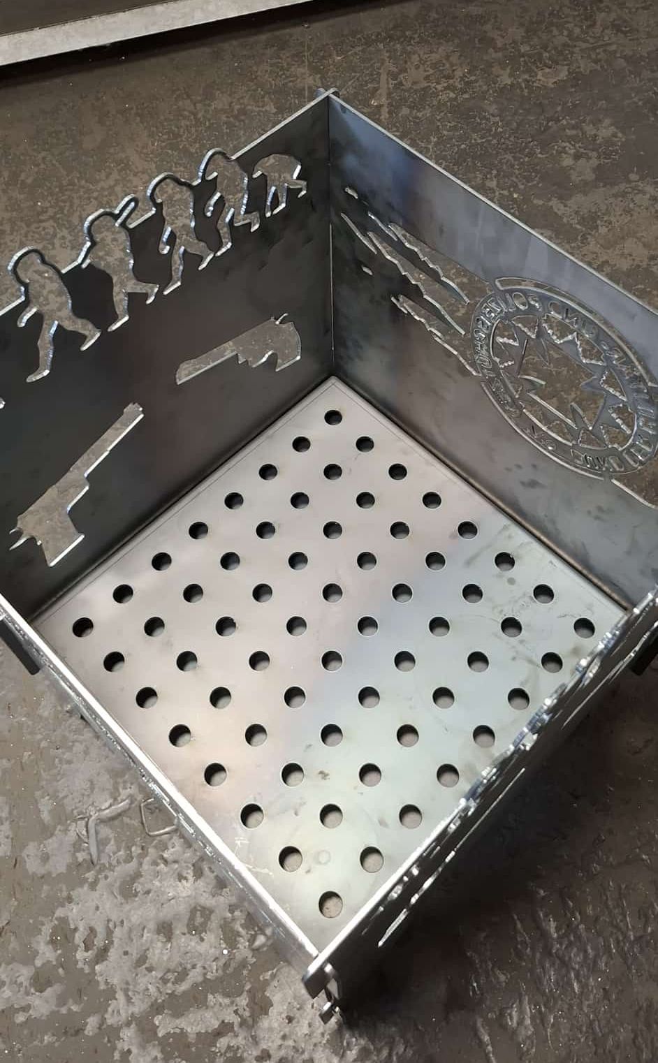Abkantungen an jedem Seitenteil verstärken die Stabilität und dienen als Auflage für Ascheschale und Feuerrost.